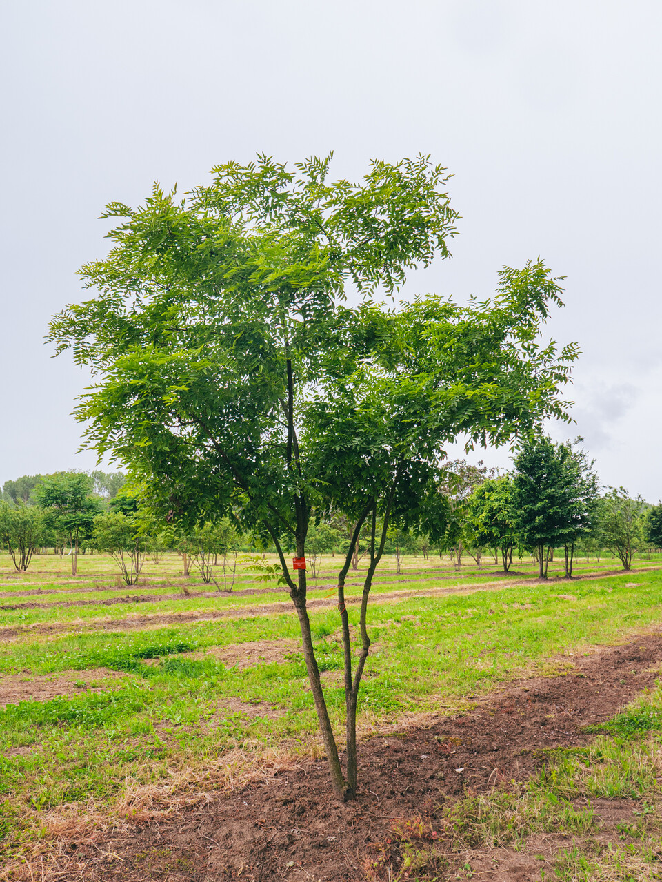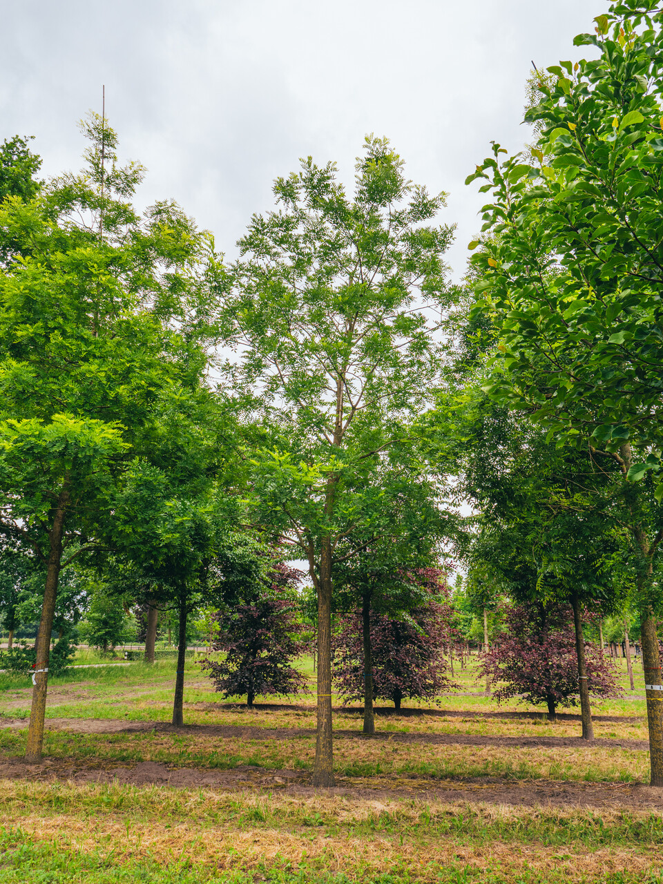 Hoogstam boom Meerstammige boom Kalkrijke grond Kleigrond Lemige grond Zandgrond verdraagt verharding Lichtminnend Bestand tegen strooizout Bestand tegen vorst (WH 1 t/m 6) Kan op droge grond Ovaal 2de grootte, boom tussen 6 en 12m Halfopen kroon Groen Wit Juli Late uitloop Snelle groeisnelheid Opvallende bloei Geveerd blad Drachtboom voor bijen Waardboom voor vlinders Giftige onderdelen Toekomstboom