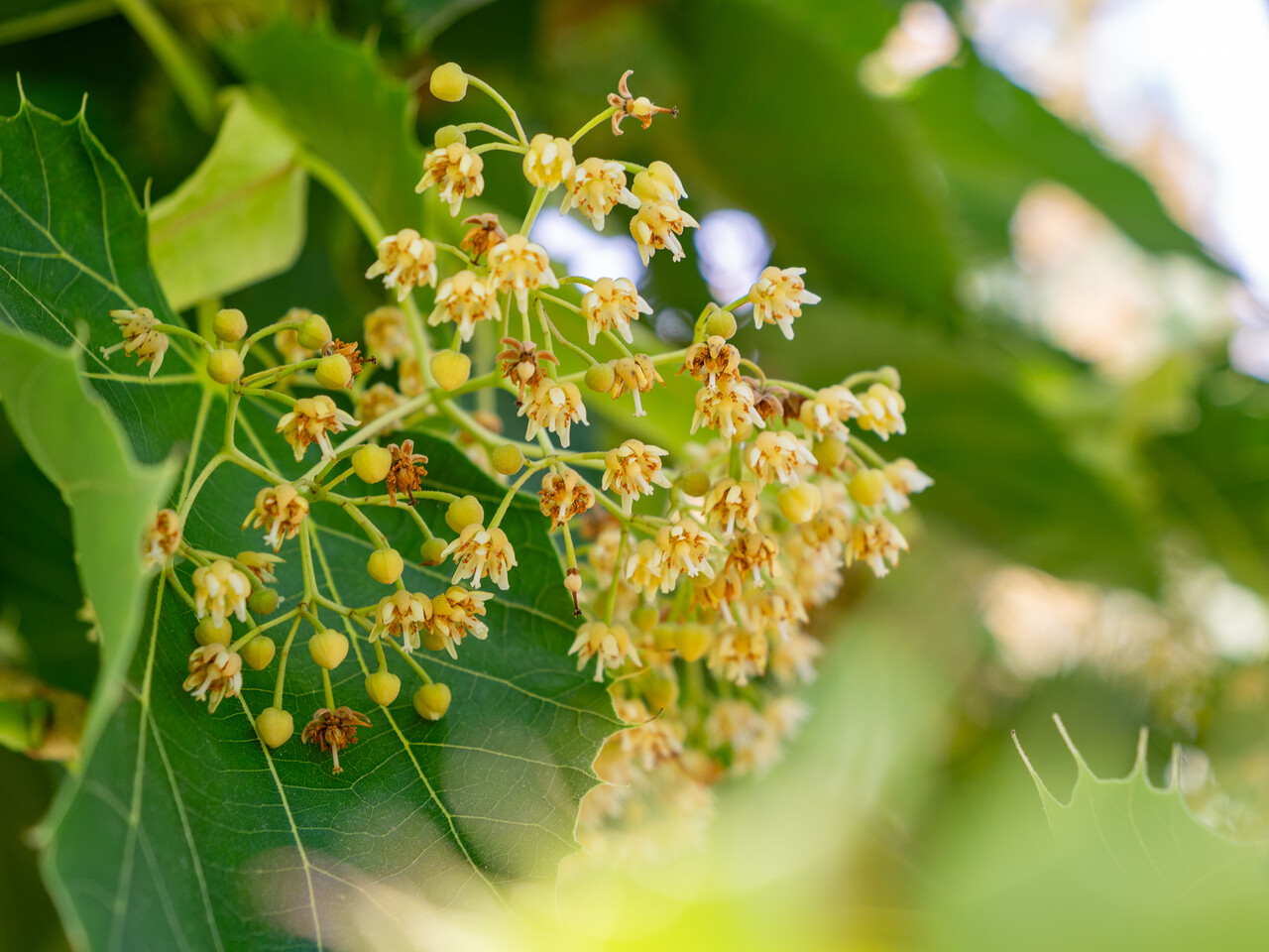 Tilia henryana bloeit in juli.