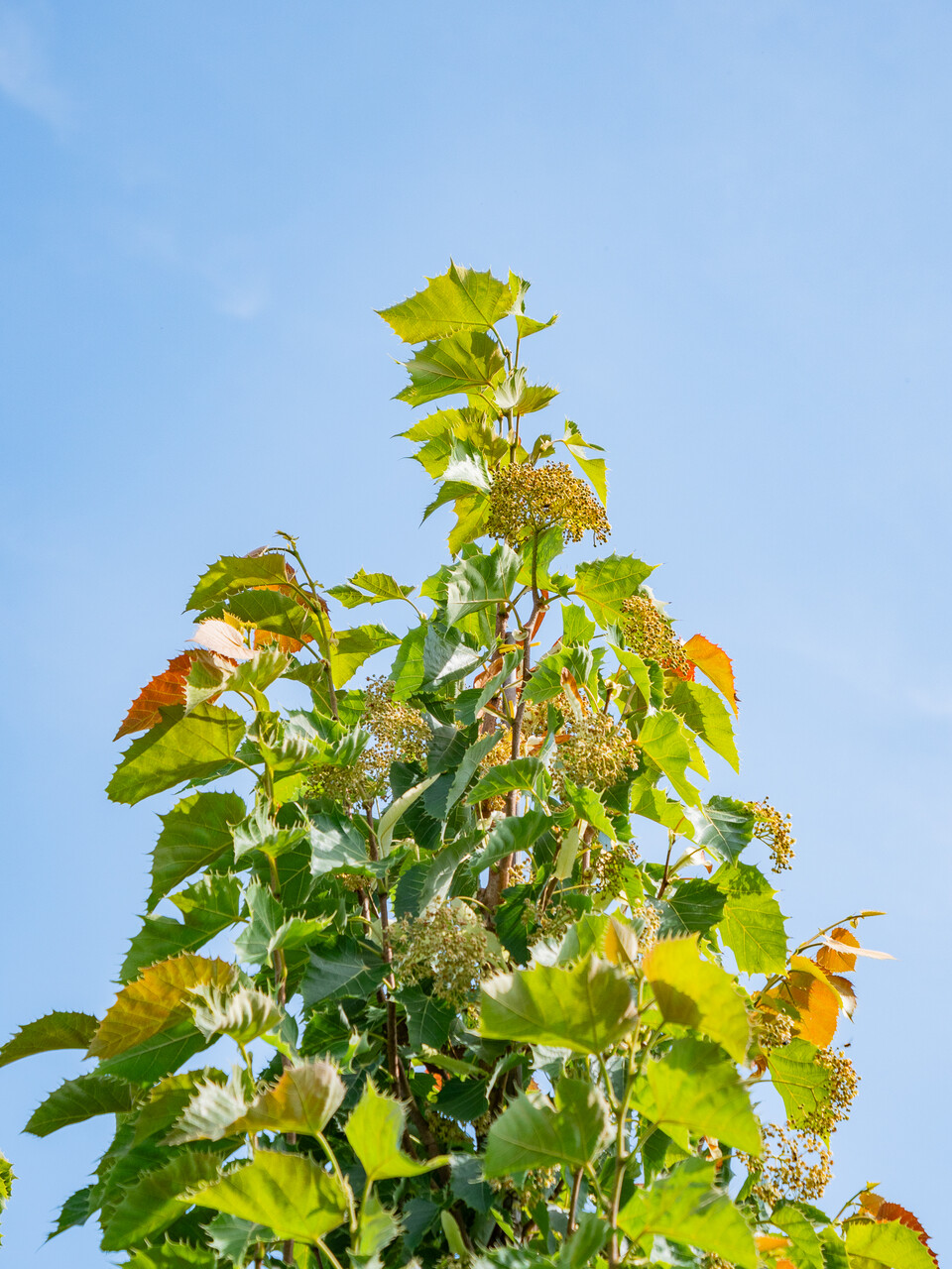 Hoogstam boom Beveerde boom Meerstammige boom Kleigrond Lemige grond Veengrond Zandgrond verdraagt geen verharding Bestand tegen wind 1ste grootte, boom hoger dan 12m Halfopen kroon Groen Wit Geel Juli Gemiddelde groeisnelheid Opvallende bloei Drachtboom voor bijen Waardboom voor vlinders Niet giftig (gewoonlijk) Geurende bloemen