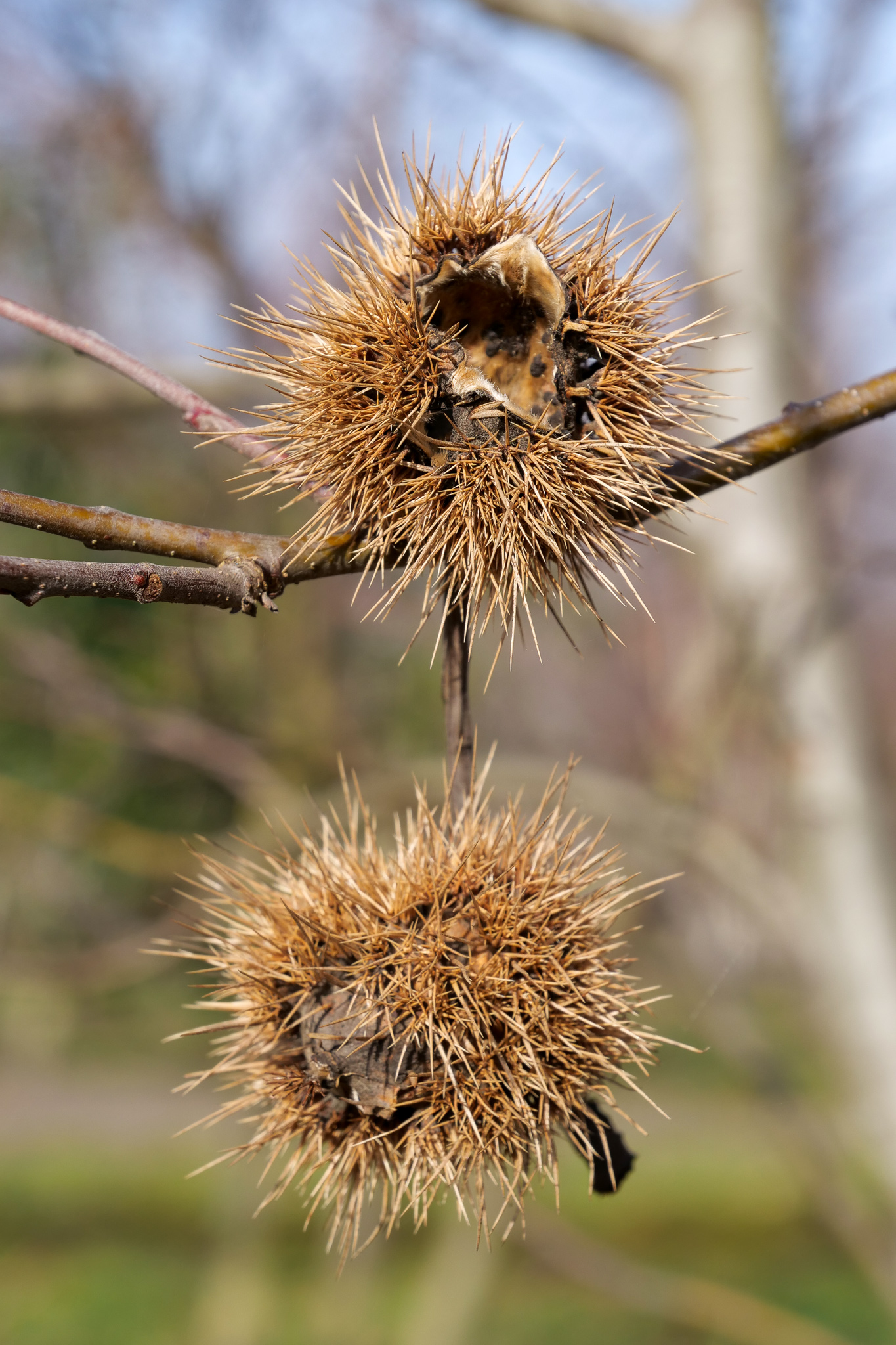 stekelige bolster met 2 - 3 noten (kastanjes), eetbare vruchten