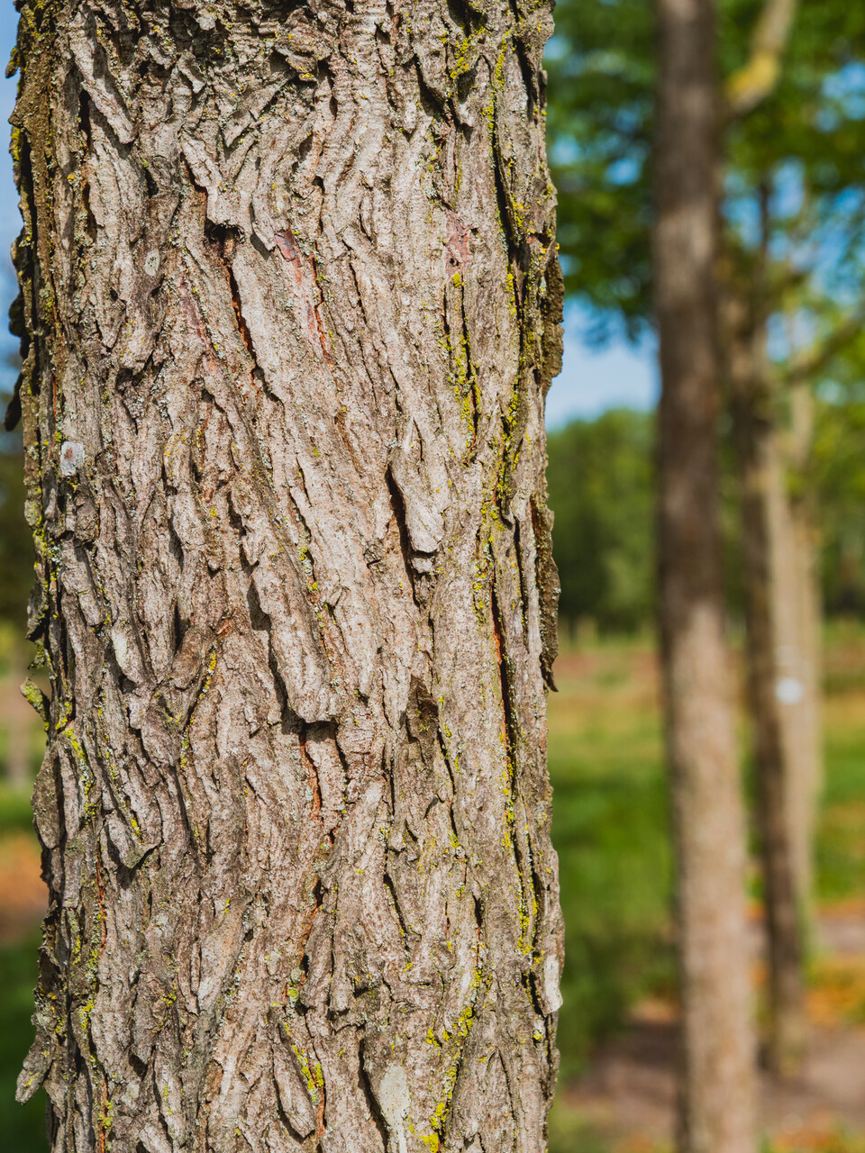 stam donkergrijs en gegroefd, jonge twijgen grijs