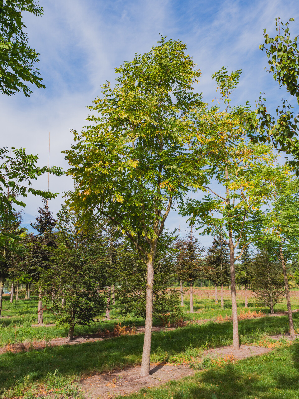 Hoogstam boom Meerstammige boom Kalkrijke grond Lemige grond Zandgrond verdraagt geen verharding Bestand tegen vorst (WH 1 t/m 6) Bestand tegen korte overstromingen Ovaal 1ste grootte, boom hoger dan 12m Halfopen kroon Groen Juni Late uitloop Gemiddelde groeisnelheid Opvallende bloei Geveerd blad Alle herfstkleuren Drachtboom voor bijen Niet giftig (gewoonlijk) Grillig groeiend Sierlijke vruchten Speelboom