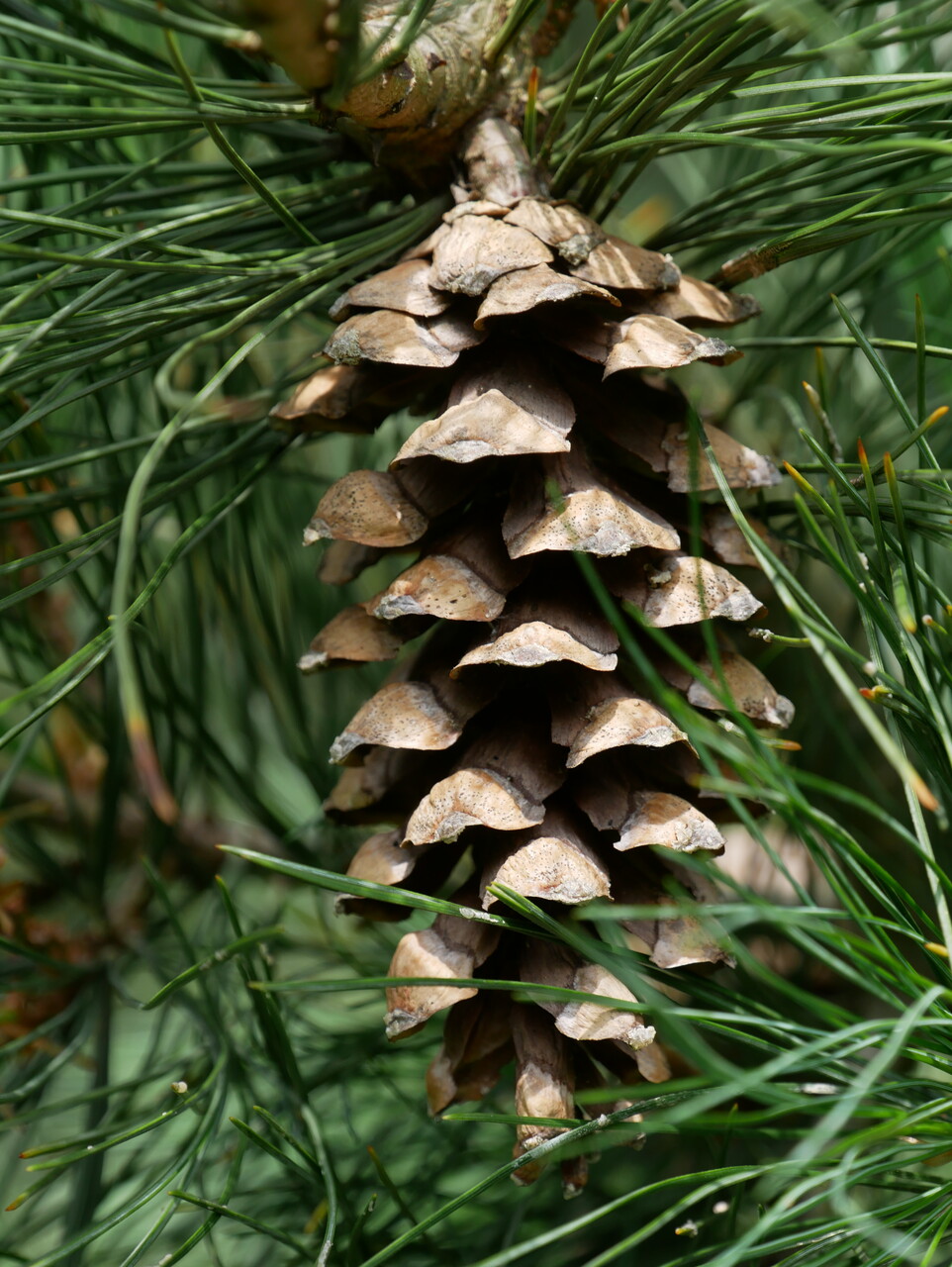 hangende kegels, lichtbruin tot roodbruin, 8 - 15 cm