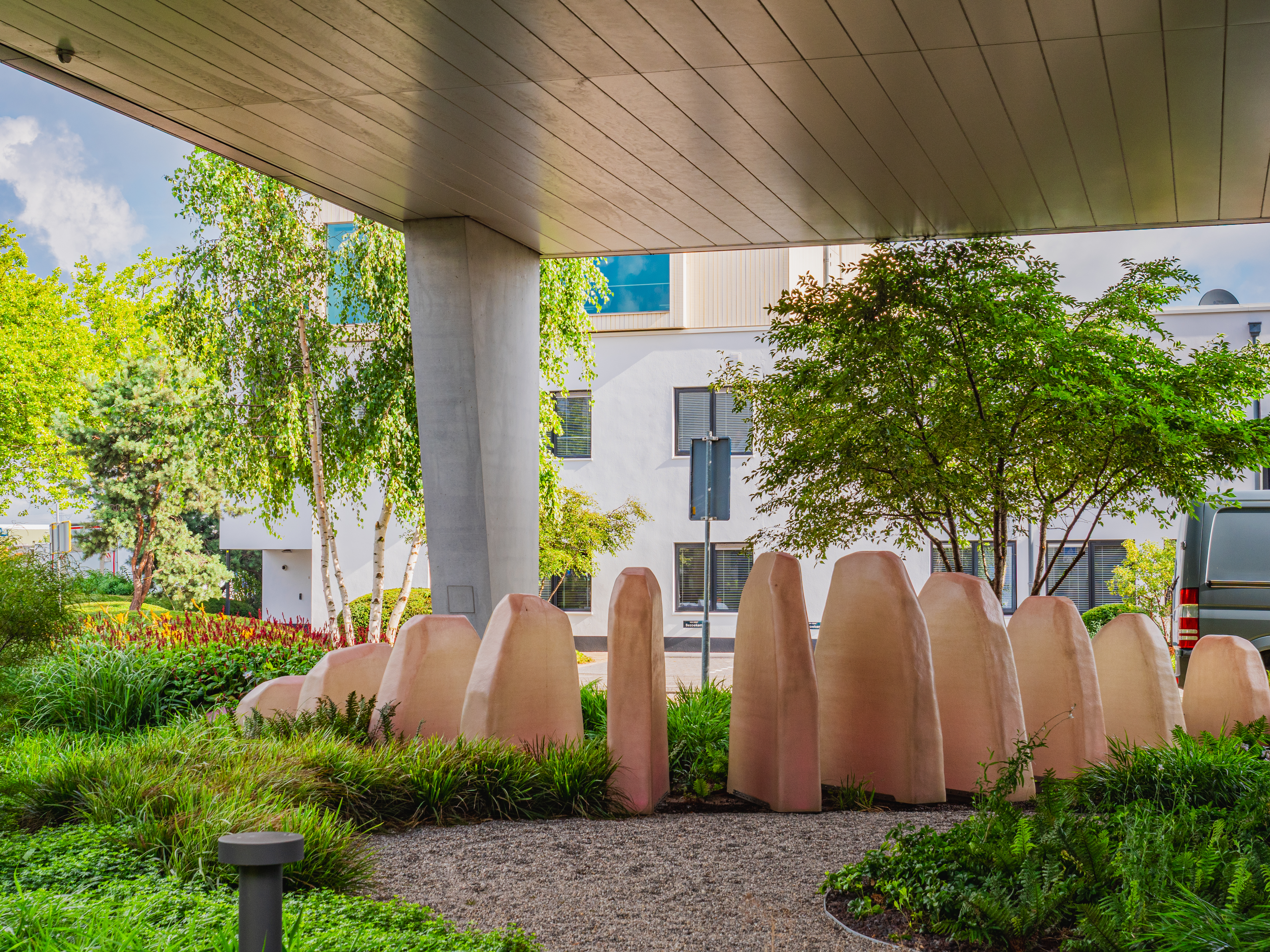 Het terrein vroeg om beplanting die past bij een hedendaagse kantooromgeving: voldoende groen voor schaduw en koeling in de zomer, maar zonder dat onderhoud een grote belasting wordt voor de beheerders. Onze adviseurs stelden een sortiment voor met een mix van laanbomen en solitairen die goed aansluiten op de groeiplaatsomstandigheden ter plekke.